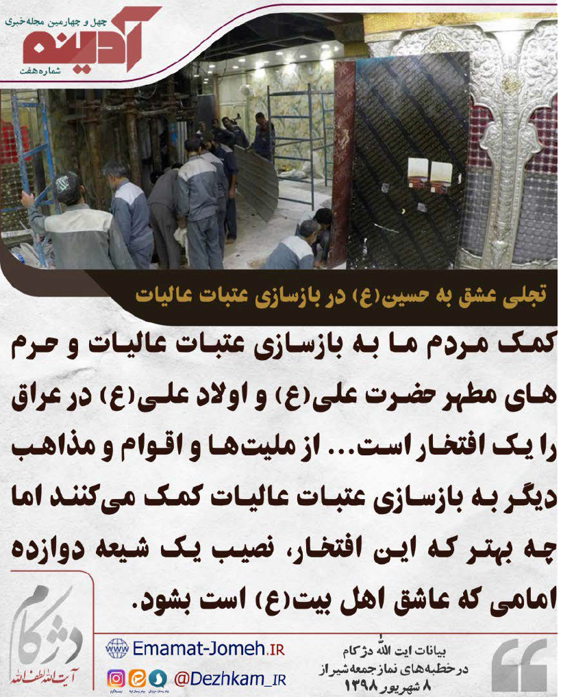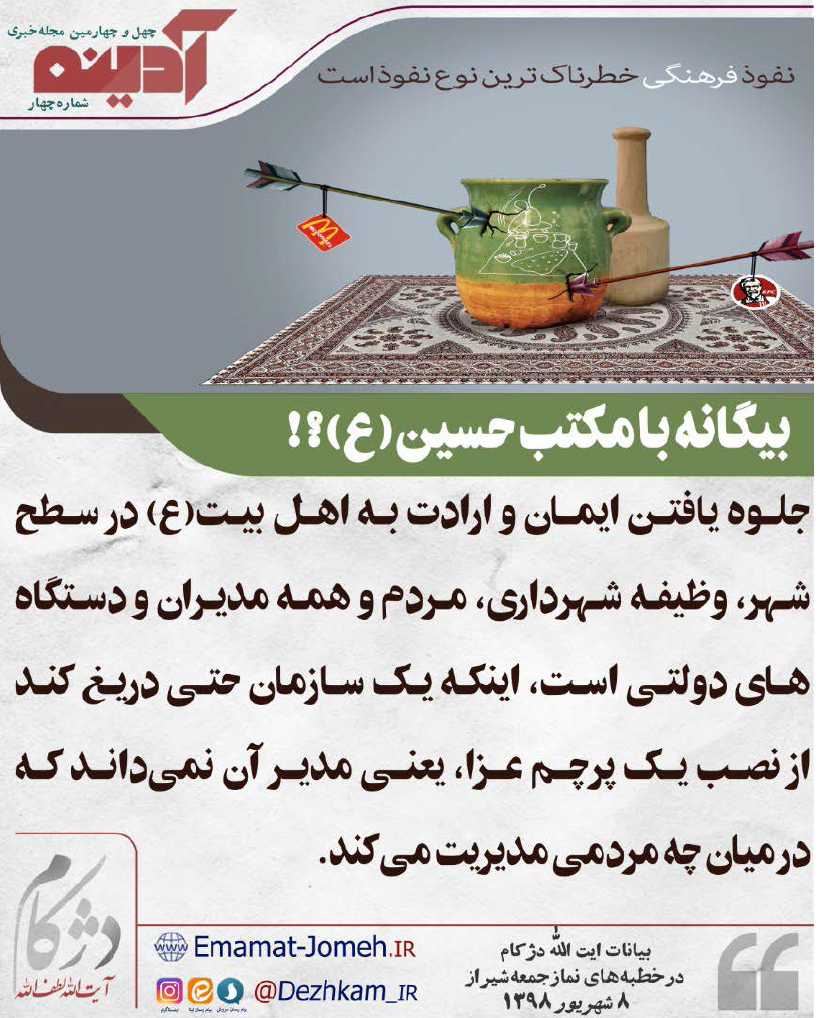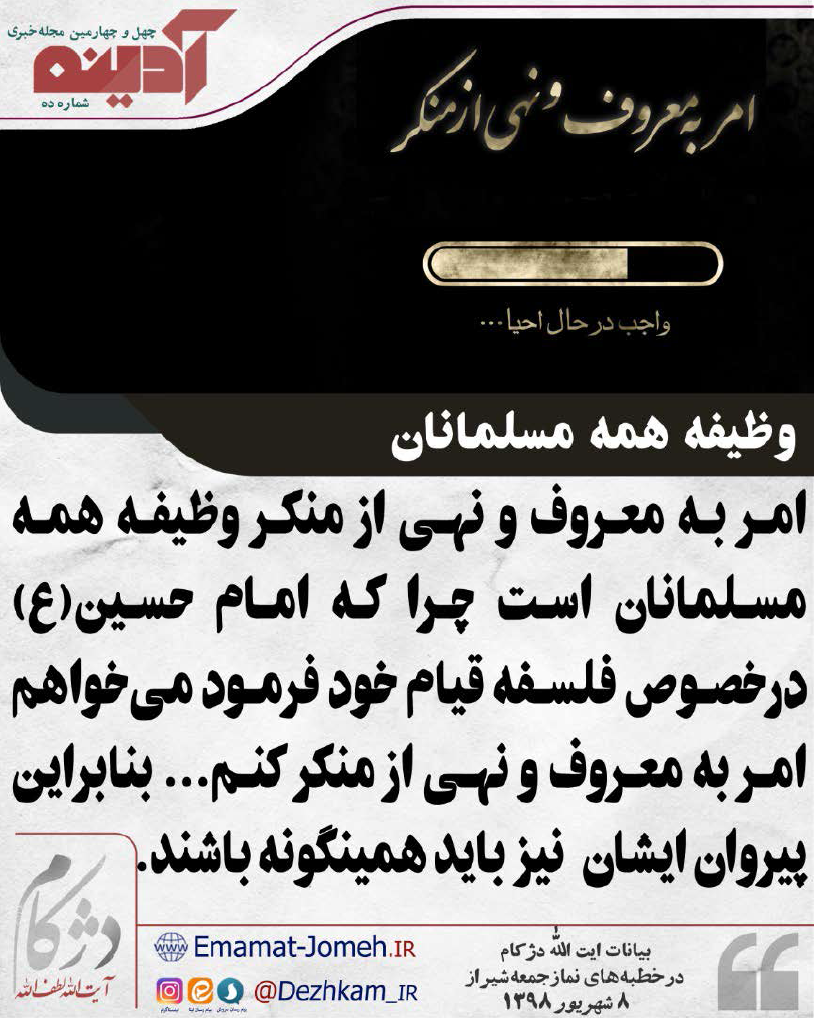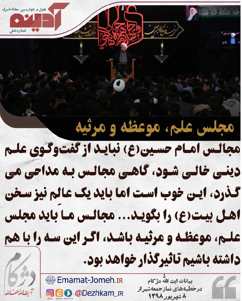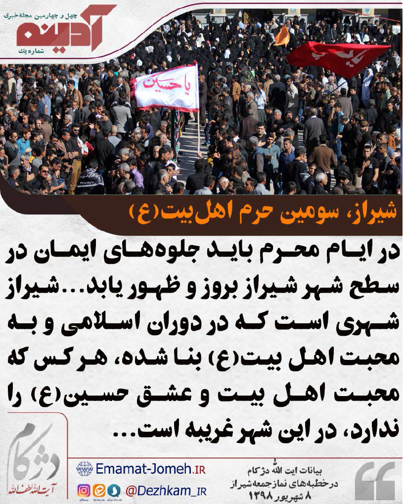 سرفصلهای بیانات آیت الله دژکام در خطبههای نمازجمعه این هفته شیراز (۸ شهریور ۱۳۹۸ )